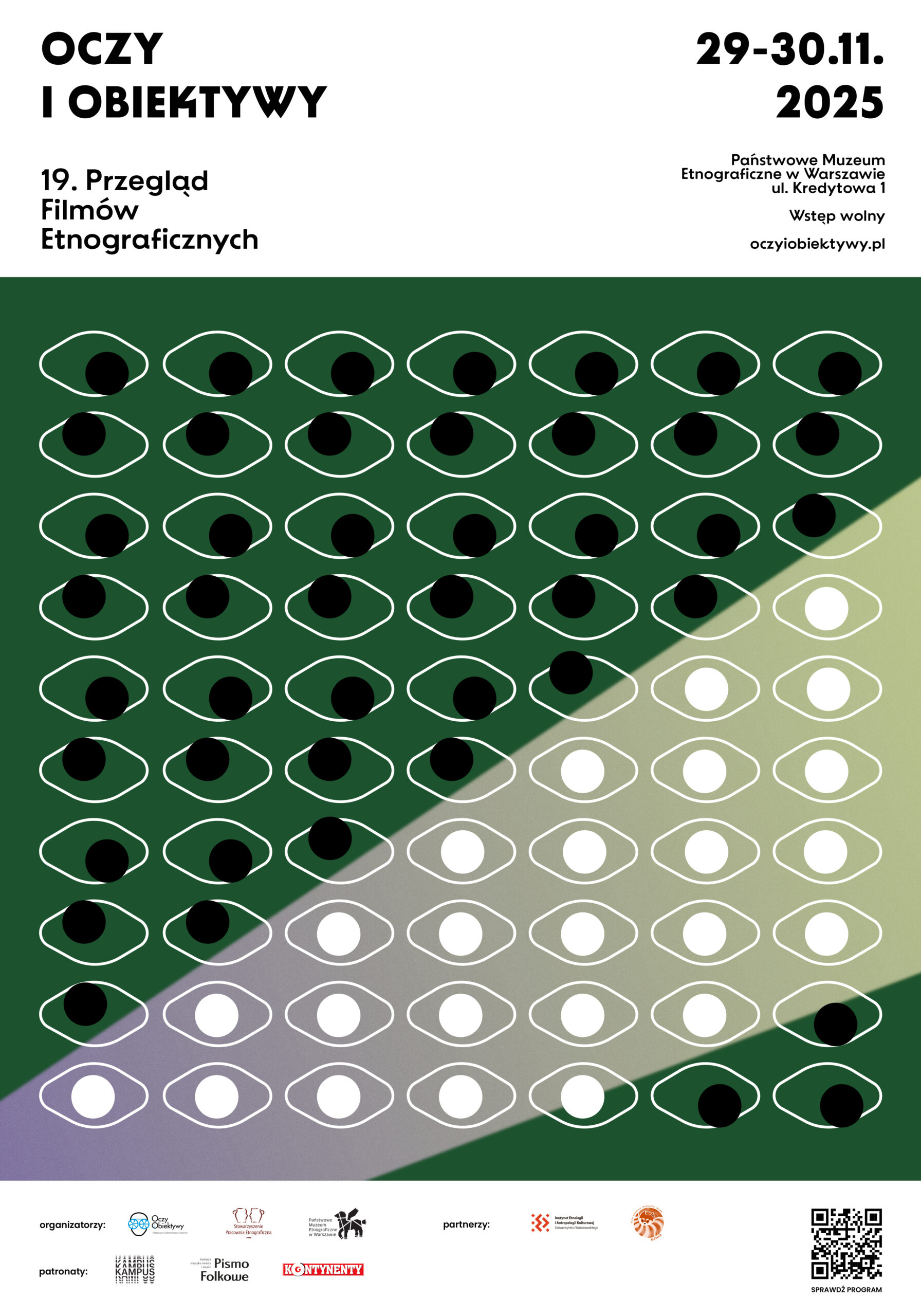 19. edycja „Oczu i Obiektywów”, czyli jedynego przeglądu filmów etnograficznych w Polsce. Podczas Przeglądu będzie można zobaczyć zarówno filmy tworzone przez etnografów i etnografki, jak i dokumenty, które wyróżniają się społeczną wrażliwością. Nie tylko ich tematyka, ale też forma jest bardzo różnorodna: od klasycznych obserwacyjnych filmów etnograficznych lub tradycyjnych dokumentów, poprzez eksperymentalne autoetnografie, po obrazy tworzone w ścisłej współpracy z bohaterami i bohaterkami.